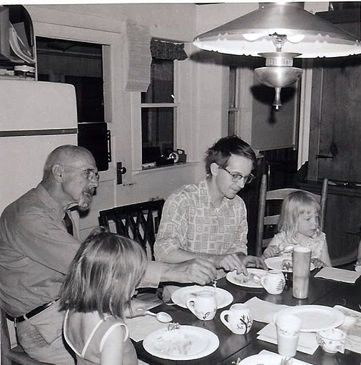 The photo is of my maternal grandfather, my father, my sister with her back to the camera and a “shirt-tail” cousin. My cousin Katy who is not a blood cousin but is still family, and who is named after my maternal grandmother. From about 1967 or 8, I think.