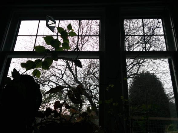 This is for photrabloggers Mundane Monday #44. After a too exhausting trip back east, I lay on the couch to conserve energy for concerts Friday, Saturday and Sunday. I return to signs of spring, inside and outside. This is the front south facing window from lying on the couch….