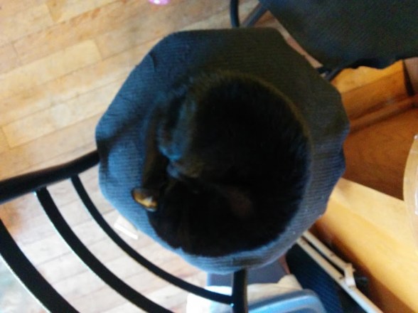 This is for photrablogger’s Mundane Monday #101, and he has a round theme too. I was trying to get a photograph without all the kitchen chaos background and thought, oh, from above. Cats enjoy symmetry and design. Boa chooses this stool because our old furnace died and is replaced by a heat pump, high on the kitchen wall. The stool is the closest place to the warm air source: when no lap is available.