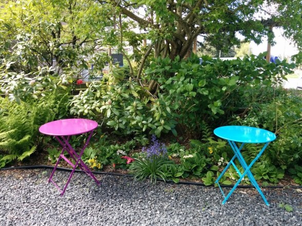 My daughter and I ferried and drove to Bellingham yesterday and stopped for lunch. The rhododendron is just ready to open and the colors are so bright and cheerful!