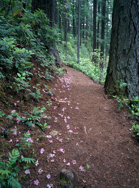 We hiked up Mount Walker on Sunday and the wild rhododendrons float among the trees. Gorgeous.