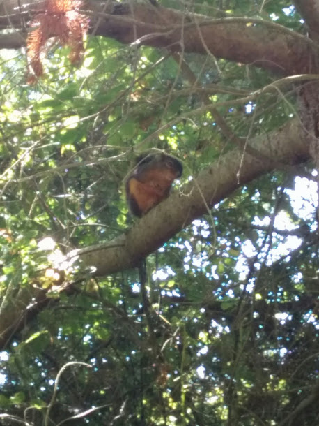 She goes out the branch and sits, looking at me. She does some grooming and nearly goes to sleep.