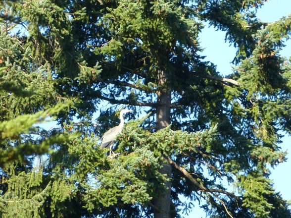 This is the last photograph in my series. I hope she is a neighbor I run into again soon! Great blue herons are so big, they need big trees to perch in, and we have them.