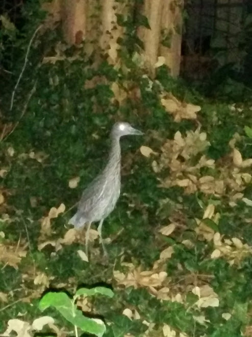 This is one of a small pair of herons that I walked by two nights ago. I think this is a yellow crowned night heron, even though we can’t see the crown. The other was in the path ahead of me.