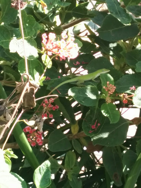 I left San Antonio on Sunday. I was reading and writing at the hotel, inside and out, and spotted this small resident. She was hanging out on the Riverwalk side of the hotel and was quite cooperative for photographs.