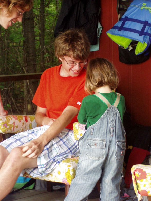 And the gold is these cousins, of very different ages, interacting and having a wonderful time. Taken in 2006 at Lake Matinenda.