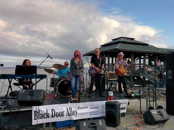 This is Black Door Alley. They played yesterday for the Concerts on the Dock, a Port Townsend Main Street Program in the summer. Thursday from 5-8, live band and food carts, sponsored by local businesses and all ages present. There was a 95 year old dancing….she’s not in this picture…. This was taken during the last song.