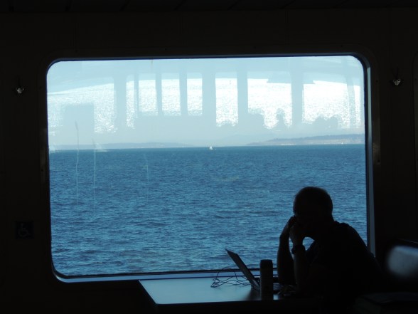 For Mondane Monday #178, a light and dark theme. I like the combination of the silhouette with the reflection. I took this on the Seattle Bainbridge ferry Friday. I saw th reflection and then had to move around to catch the effect.