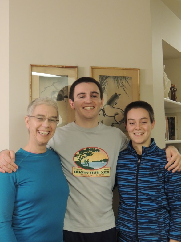 Yesterday I put up the before shot. After: we have matching haircuts. I think my children look like seals with their hair short. I don’t look like a seal! Maybe an ermine? I don’t remember ever having my hair this short!