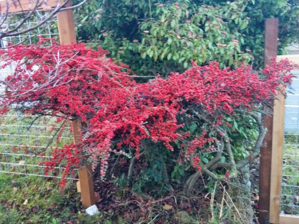 I am watching the birds and deer eat the winter berries. This is in my yard. I have a tree that I watch out the window at clinic. Robins will land in a flock in three tall trees across the street. They will swoop from across the street in groups and eat the berries. The berries will disappear from the top of the tree down, the most risky and exposed ones last.