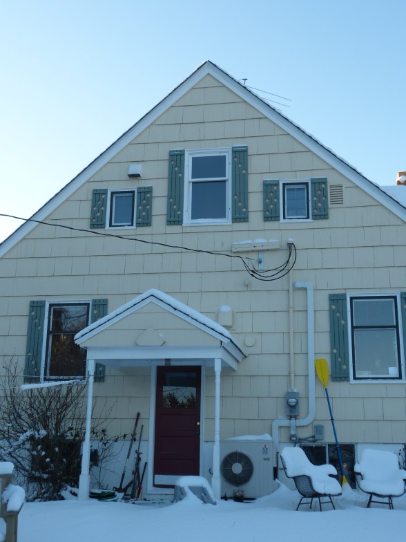 Another snow picture as the sun rose and things were backlit. The front of the house faces south.