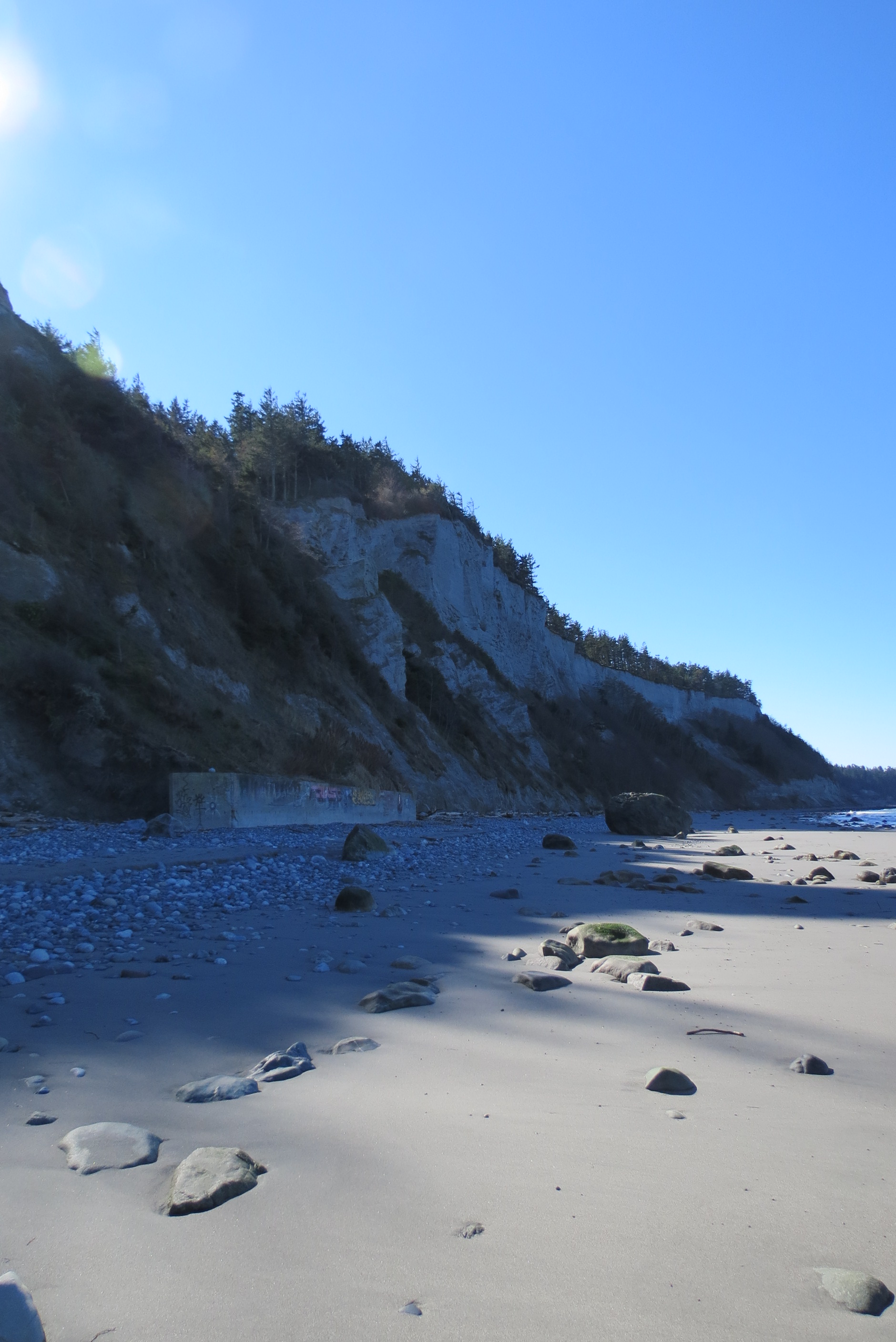 I love walking the beaches here and there is a little fear involved. The cliffs can and do collapse. Sometimes the collapse goes out past the median tide line. It would be lethal to be under these cliffs when a piece lets go.