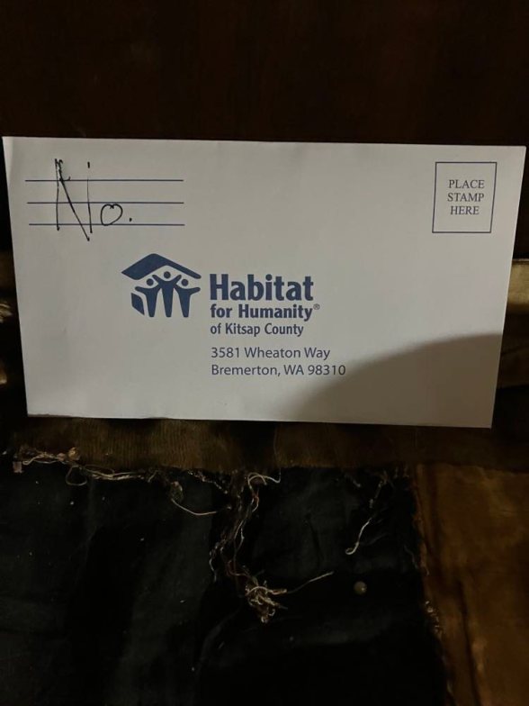 I did not sign my name and I do not fill out a return address. Here is a picture of it, before the stamp. Habitat for Humanity, the next county south. They have not endeared themselves to me.