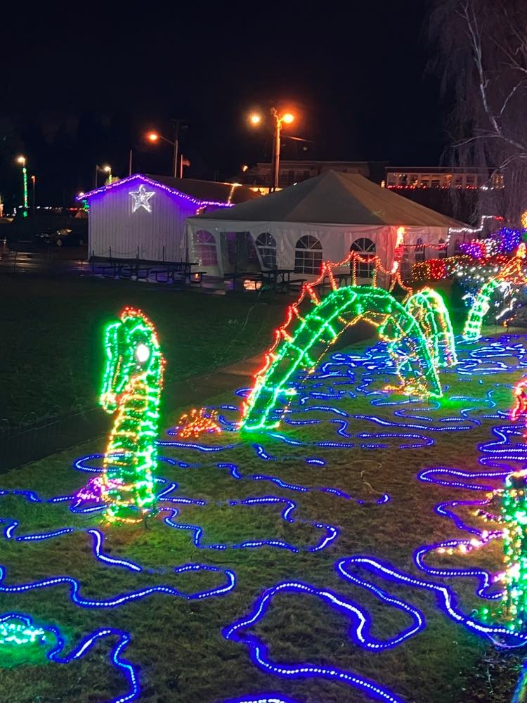 This is Grace, a Winter Break Sea Serpent. She is visiting the Kingson, WA, in the park right by the ferry dock. There are many other creatures. I am not sure what the Sea Turtle’s name is, but she and Grace are clearly friends.