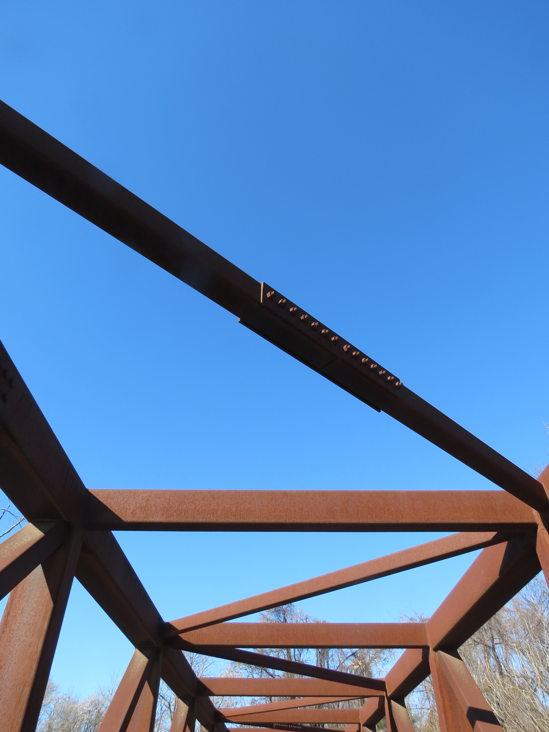 We visited my two aunts and my uncle in Roanoke, right after Christmas. My aunt and daughter and I went for a walk. It was a bit cold but beautifully sunny. This bridge looked so beautiful against the border of the blue sky.