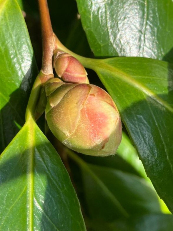 My camillia is the first to bloom, usually in late January or early February. The buds are starting to blush pink. Oooooo, I can’t wait!