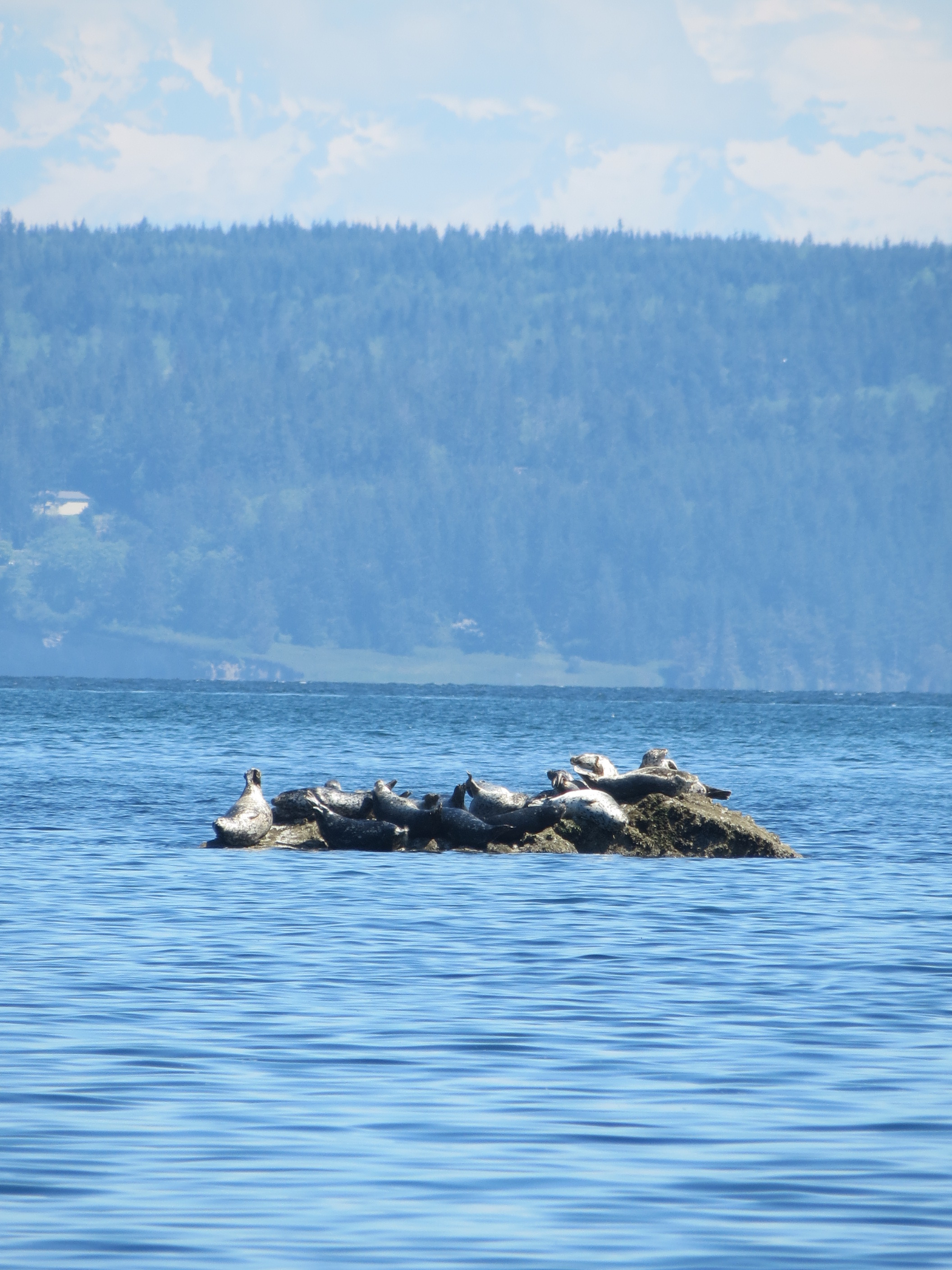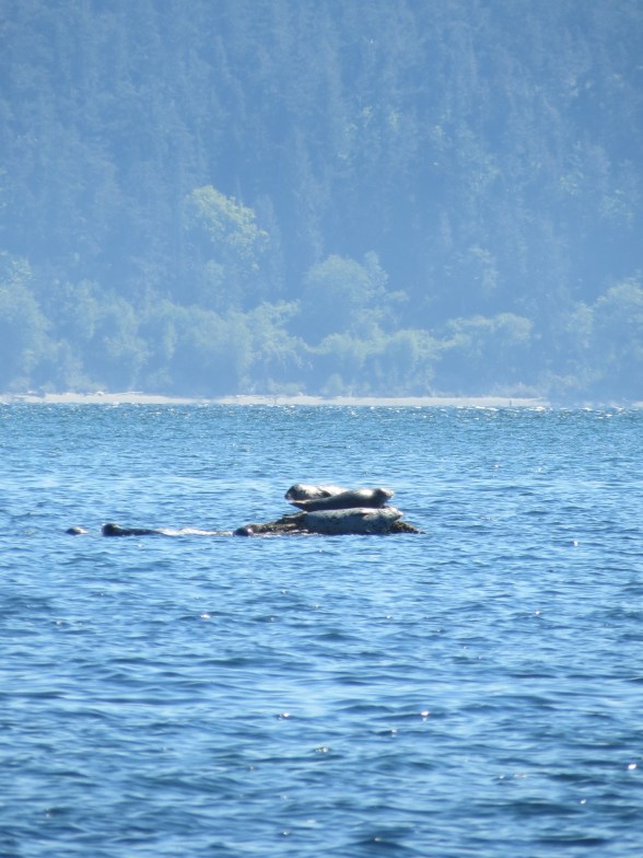 The sea lions that I wrote about look static in my still pictures from Marrowstone, here. I am zoomed all the way in with my Canon PowerShot SX40HS, and in bright sunlight hand held, I can’t really see much through the camera. I try to get it in focus and hold it still.