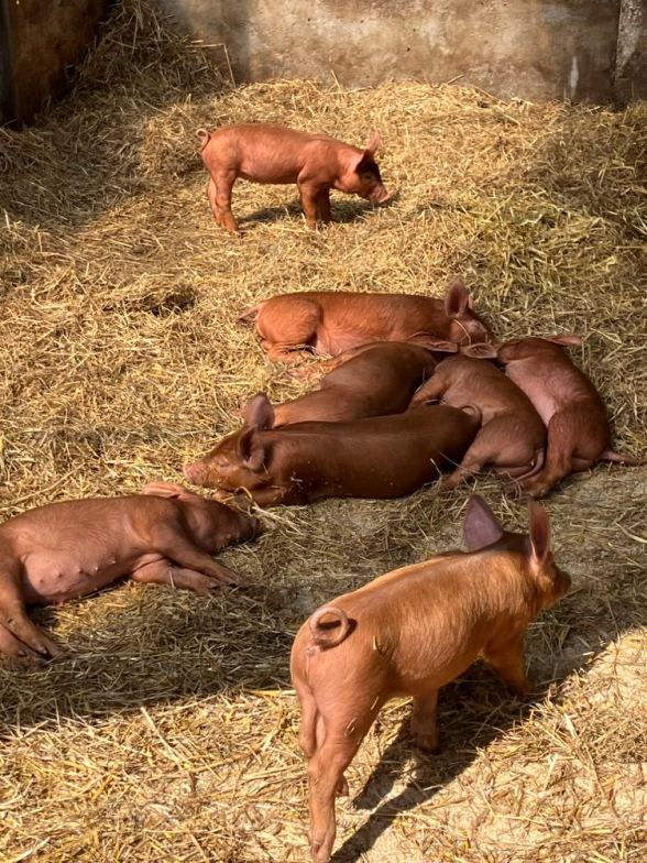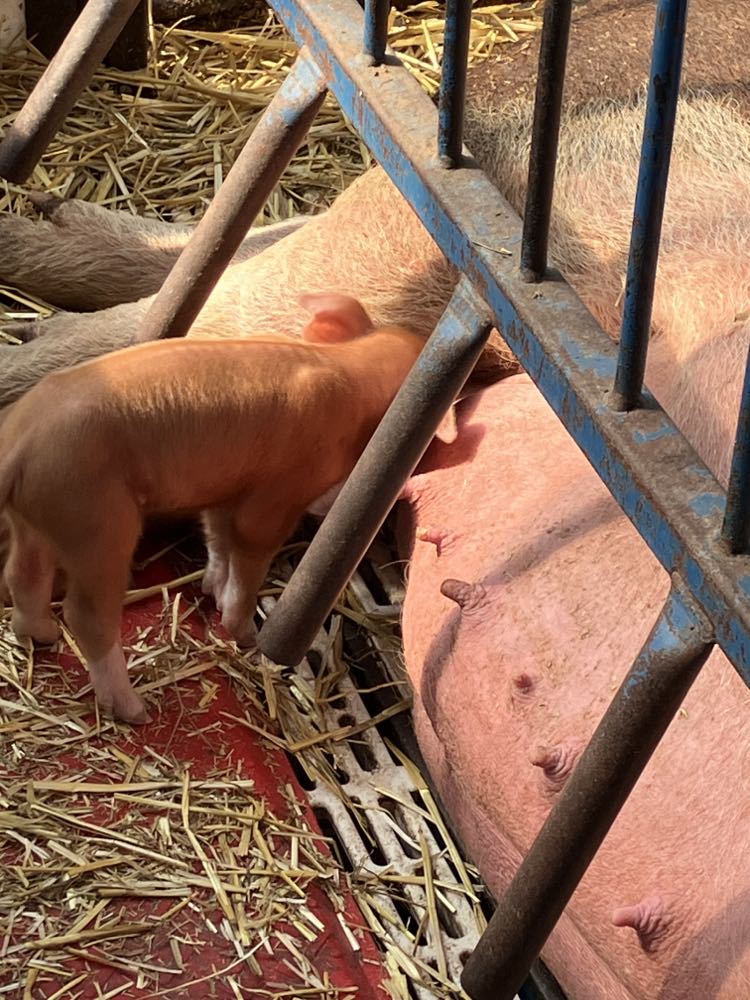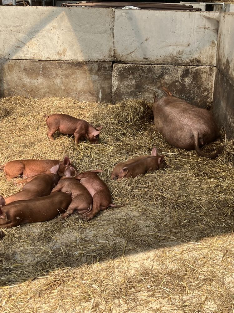 The pig farm is quite wonderful. Lots of piglets. This mom maybe is having a nursing break.