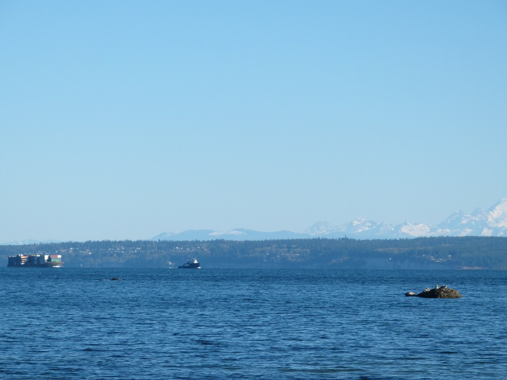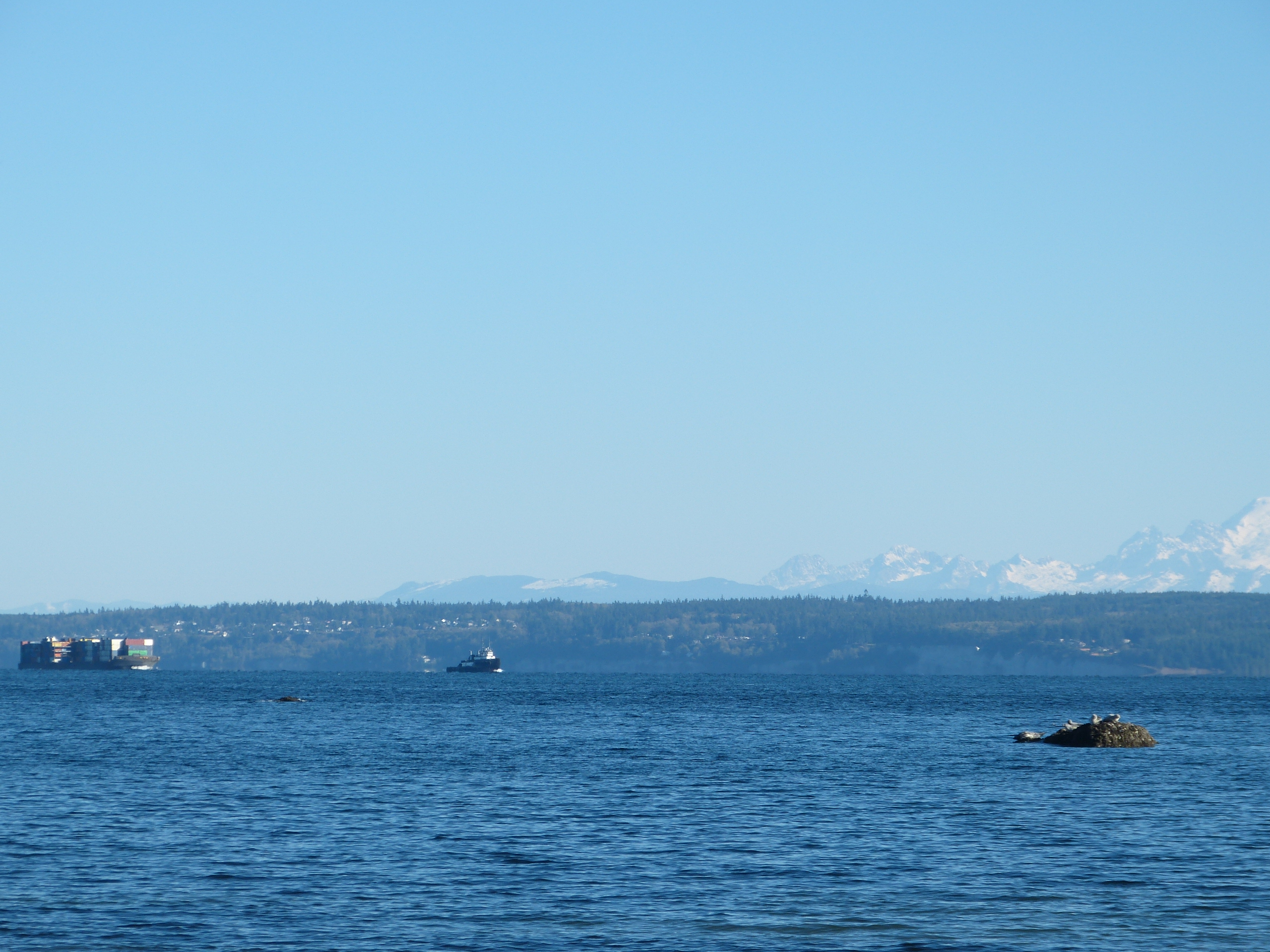 The container ships look so huge when I am next to them. They don’t on the Sound, though. What do the seals think?