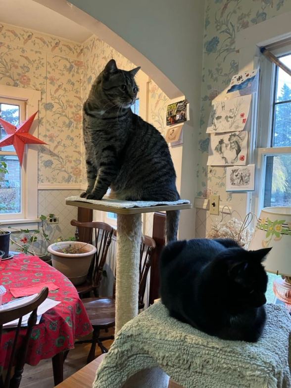 Breakfast, a little catnip, and relaxing on a winter morning.
