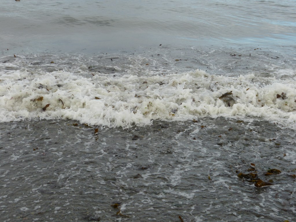 The storm and king tides wash tons of seaweed up. The seagulls check it for delicious deeper sea morsels.