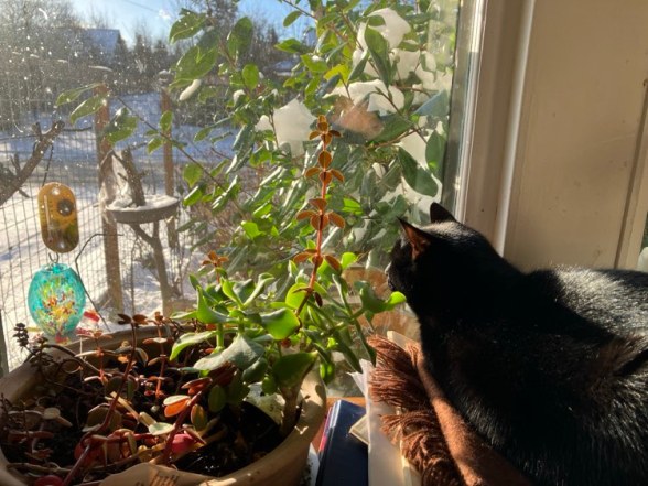 But the cats watched the feeder tv quite happily. I took them out in harnesses and they decided to come back in quite soon. I don’t think they minded the snow, but they did not like the cold at all.