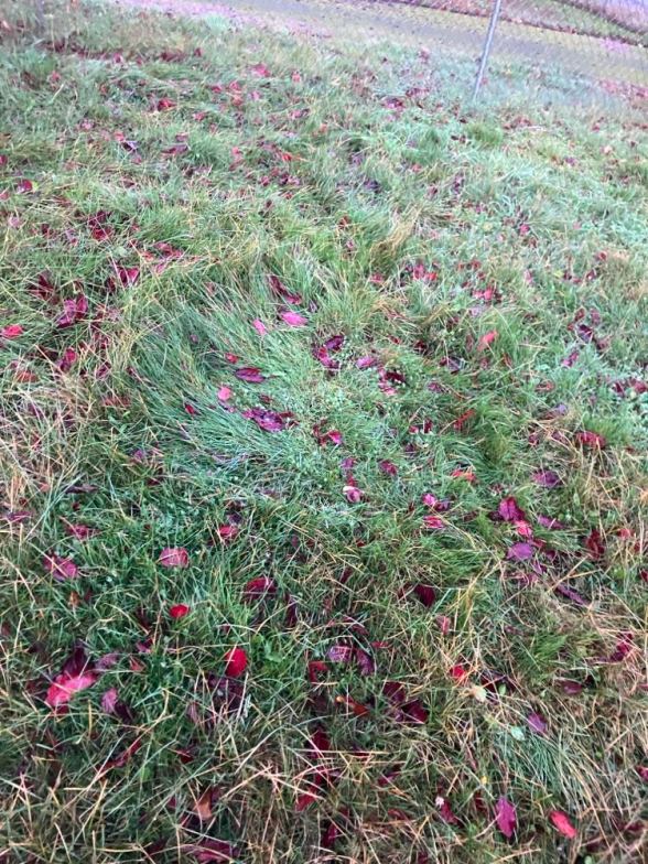 Sol Duc and I went for our walk together yesterday. This is a yard across the street, with the grass all pressed down where someone slept recently. Local deer or Sasquatch?