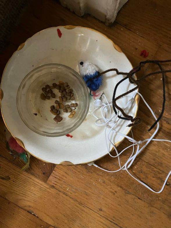I may put the finger box back on the small noisy sky thing setting. Since Mother won’t give us more food. She did get a new water thing. I am not sure about it. I would rather have food.