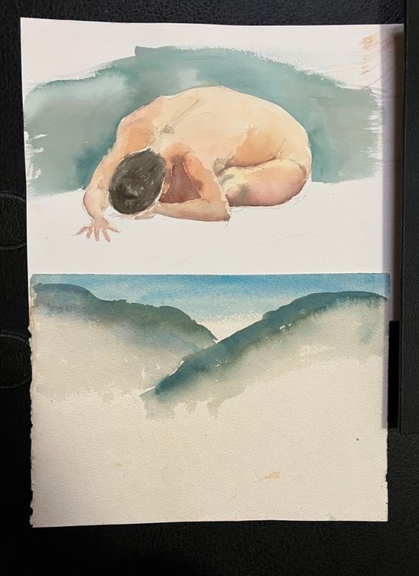 Today’s watercolor is flowers. My mother loved flowers, had a wild and delightful garden, and painted them often. This is a small watercolor, 7 by 10 inches, no date.