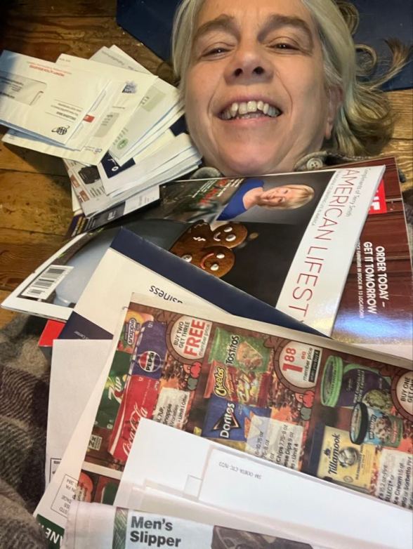 I took this photograph when I was picking up mail for a neighbor. I said he’d better come home soon or I would be buried. And gosh, we can’t see any parts.