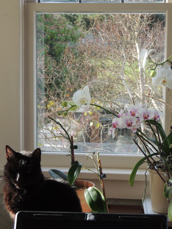 windows on three sides, the orchids and I