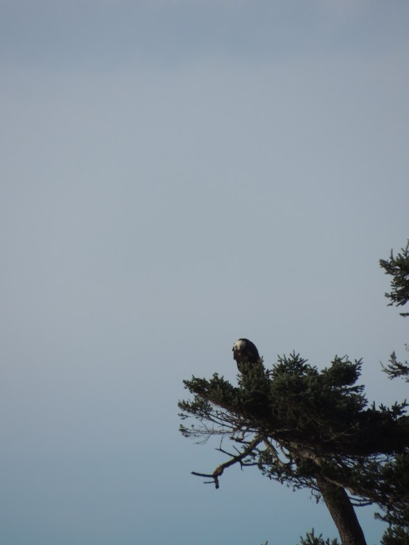 My daughter and I are working our way around the Fort Worden lighthouse. I catch the eagle from different angles. I am hoping for a close up.