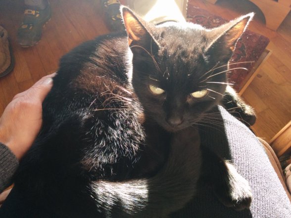 This is my beloved cat who died in February 2020. She was named Boa Black or Feather Boa, depending on the situation. We got her as a tiny kitten at the pound. She had the softest fur and purred the instant I picked her up. She was 17 when she died.