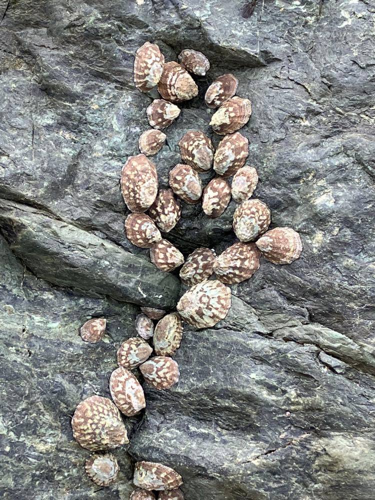 Another of the huge rocks has been on the beach for a while. Look who is living on the surface, while the tides roll in and out. An amazing surface, right?