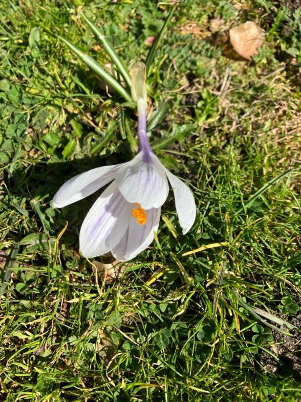 Yesterday I saw two trees in bloom, cherries. Last week goose sitting, my friends had these crocuses up and blooming. And my camellia buds are turning red at the tips and the plums are budding out.
