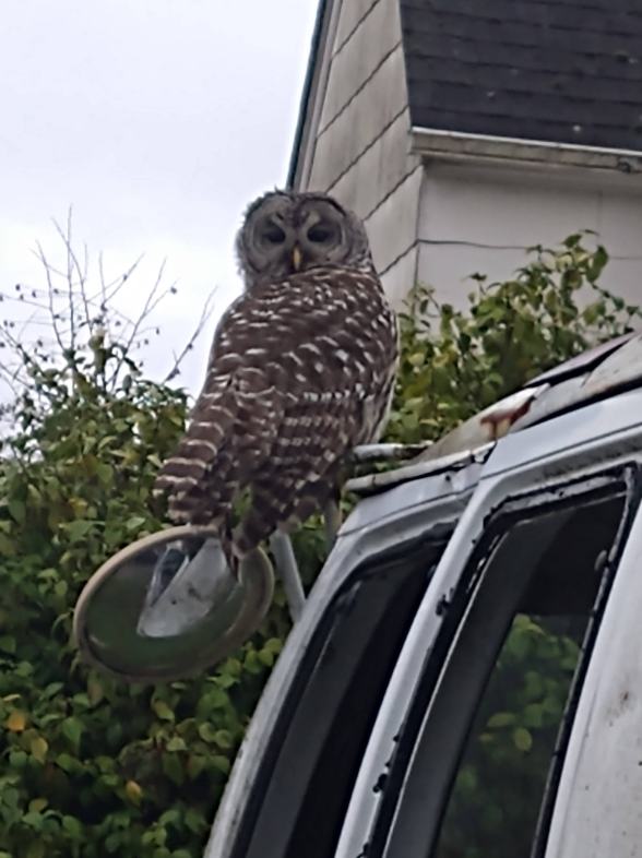 I am driving back from singing for the church and see this neighbor on an old van. It is 2:30 pm. No napping in the day today! Quite awake and calm when I send my window down and take some pictures. I only have my phone and not my big camera, but I sing a thank you song anyhow. Best wishes for mice.
