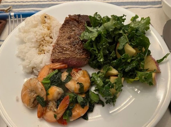 Mordechai, the Quimper Family Medicine genuine plastic skeleton, came out to dinner with us on Saturday and seemed to have a great time. She is wearing a sequinned top, though you can still see her ribs through it. Lots of people stopped by to get introduced….