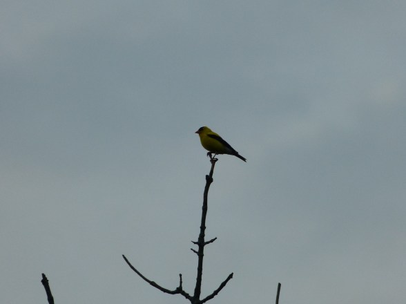 I took this with my camera at full zoom and knew I was photographing a bird, but not what bird. I did know there were goldfinches around, because I would spot their flight, up and down like a wave, and heard them. IΒ hold my breath and freeze to try to catch the shot. This worked! Overcoming the disadvantage of distance and my limited vision…. and letting the camera work.
