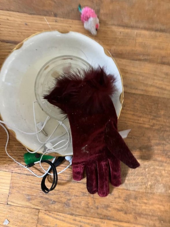 Mother has relented, a little. I could feel the pinch of hunger in my belly. She seemed to be ignoring the offerings in my bowl. My sister has helped. She is able to climb up and get the gloves with the delicious animal smell. I do not know what the animal is, but it makes me more hungry than ever. She brought me a glove from high on the shelf and added it to the bowl after we had our sparse morning feeding! I was starting to feel as if my belly was pressed against my ribs! My sister is still rounded. She is smaller and doesn’t have my needs.