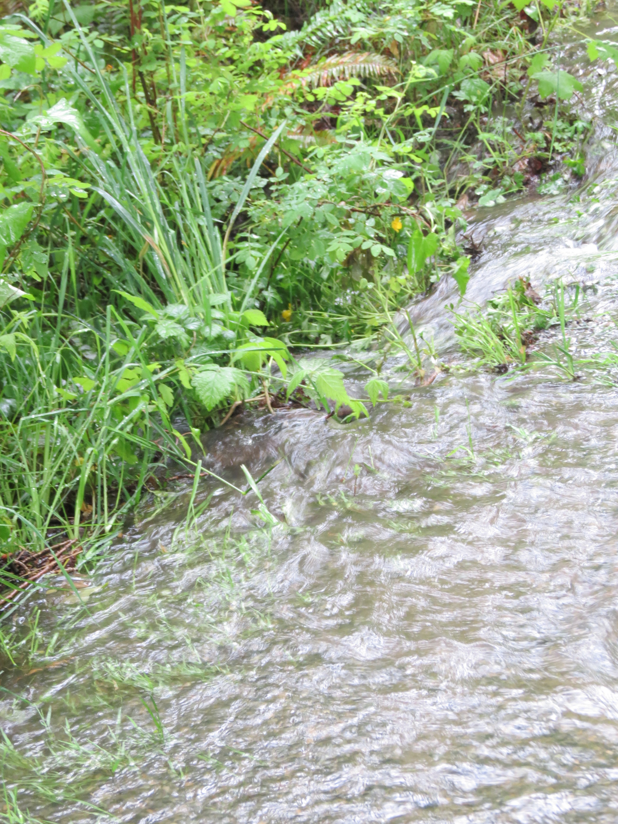 This is normally a path by the Kai Tai Lagoon. However, we had a very heavy rain and the water backed up into the Safeway parking lot. Here is the gulch where it is running into Kai Tai Lagoon: