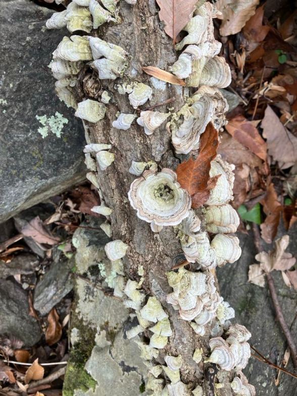 This is a log on the beach in May 2022. A tiny forest and other things growing, fed by the seawater. We don’t know how long the log has been tossed from sea to shore and sea again.