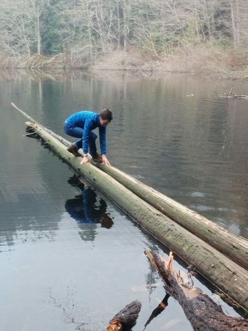 My daughter and I hike in Larrabee State Park on Saturday. We went up to Fragrance Lake and around it. I wouldn’t go out these two logs, would you?