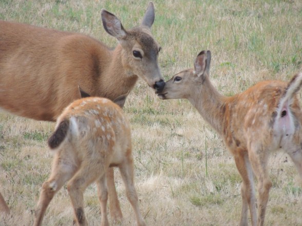The deer were in the empty lot across the street from my clinic yesterday. Both fawns went to check in with their parent when I got out of the car with my camera. Imagine the terror of a small child whose parents have been taken away.