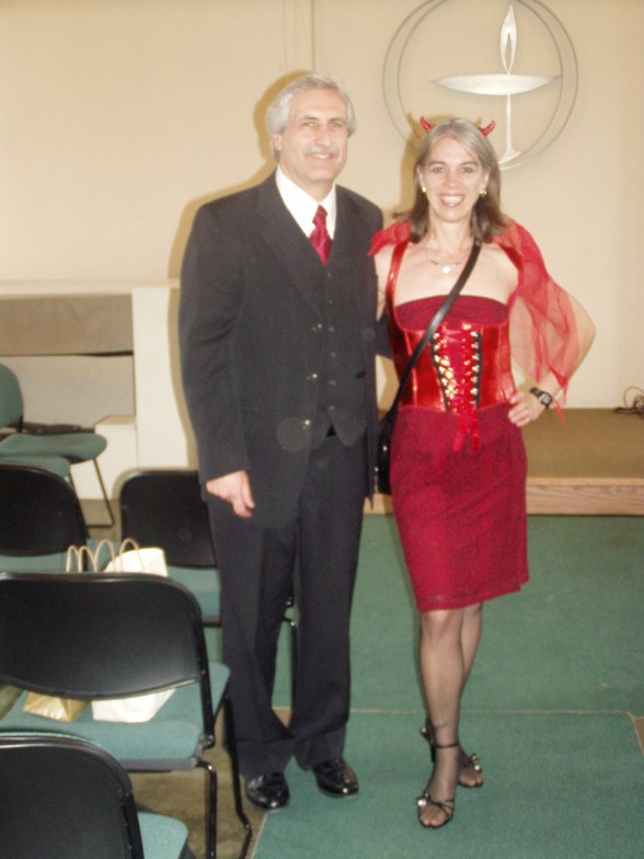 The photograph was taken 2016 or earlier when Halloween was on a Sunday. I dressed up and so did the minister.