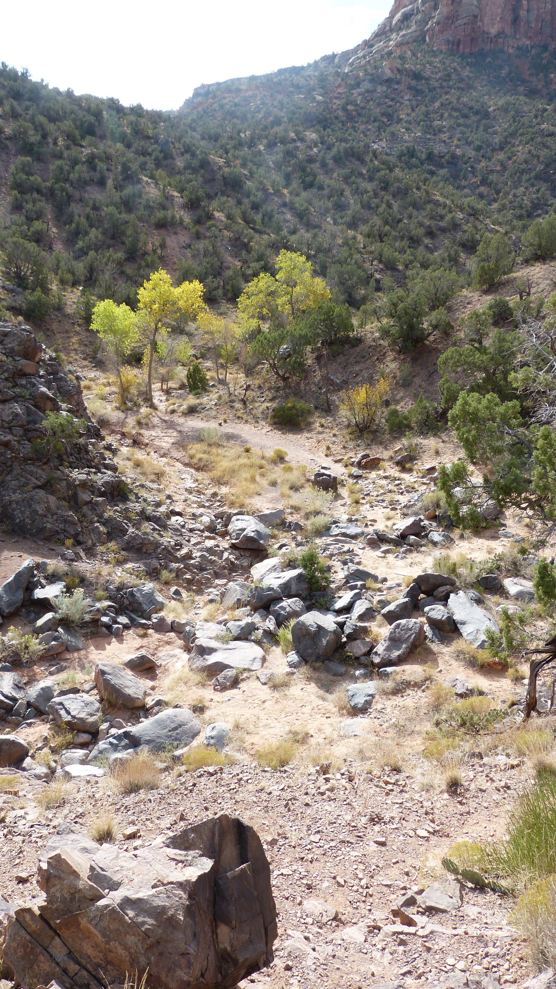 It’s hard to see the scale in photographs. The rocks on the ground are as tall as I am. And that is the trail, winding through those rocks. Did the rocks wash down from further up? They do not look like the surrounding hills. Those are some serious boulders for a seasonal stream to carry.