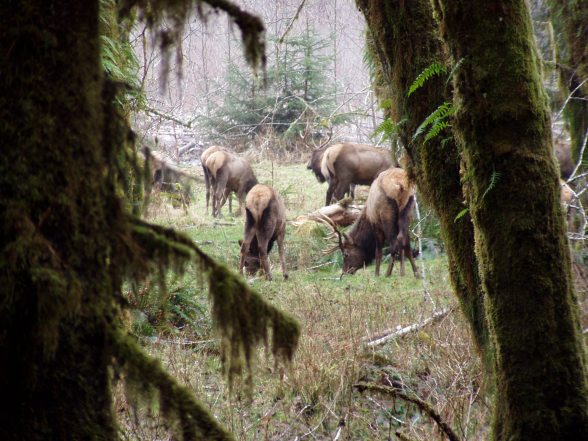 Our family of four is visiting the Hoh Rain Forest. I think my husband is a relatively normal person and that he and my daughter are just being silly.