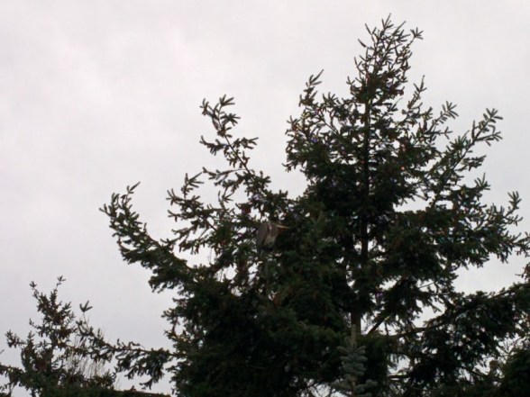 The bird napping in the tree is a great blue heron. In the last two posts, the heron had its head tucked under its wing. I did not try to get closer because I did not want to disturb the nap any more. The clue from a distance was that the heron is only about 30 feet up in the tree and looked huge: too big for an owl or a hawk and not an eagle.
