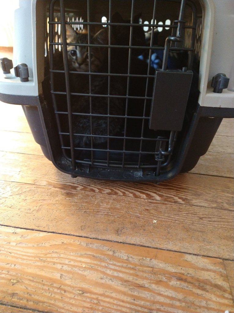 Good that I didn’t leave the bag out the first week they were here. I was supposed to “keep them quiet” since they were post-operative. You can guess how well that went. One jumped over the back of the couch from the floor and landed on me when I was half asleep and then tore off the couch. They seem fine.