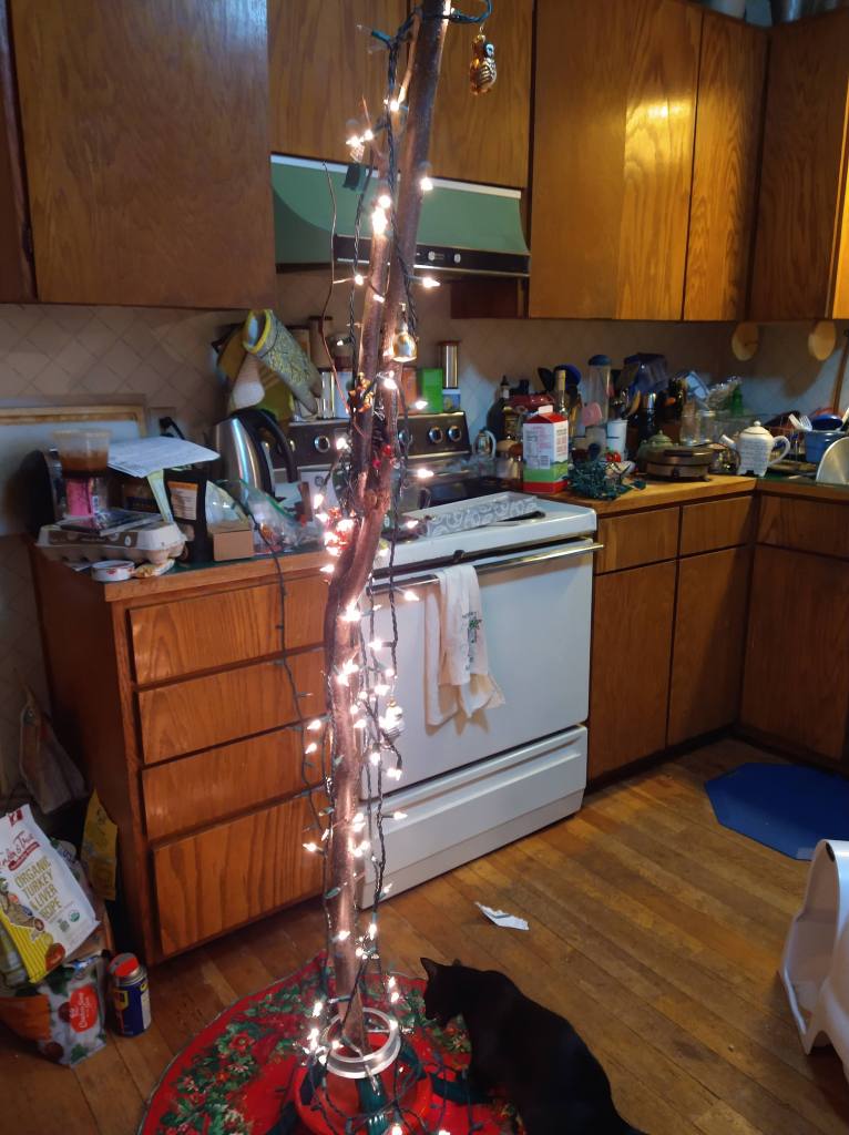 This is my adult children’s fault. They told me not to get a live tree. I figured that a dead one is legit, right?