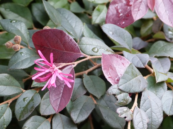 Still in the Lan Su Chinese Garden in Portland. I could only see this from one angle. The yellow flower is huge and we wondered if it was real. Seeing the other part behind and gently touching one of the leaves… real.